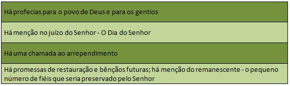 O profeta anuncia o juízo inevitável sobre o povo de Deus e as nações, mas consola pregando promessas de restauração.